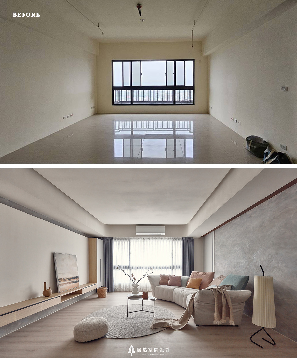 當柔光漫溢入屋,蘊生沉澱後的優柔靜靜流淌,不加雕琢、不設界線,以寬闊尺度鋪展,低調卻自成雋永氣度,為屋主砌築一處能安放歸屬、回歸本真的純粹境地,完美詮釋了「剛剛好的空間,剛剛好的家」的設計初衷。