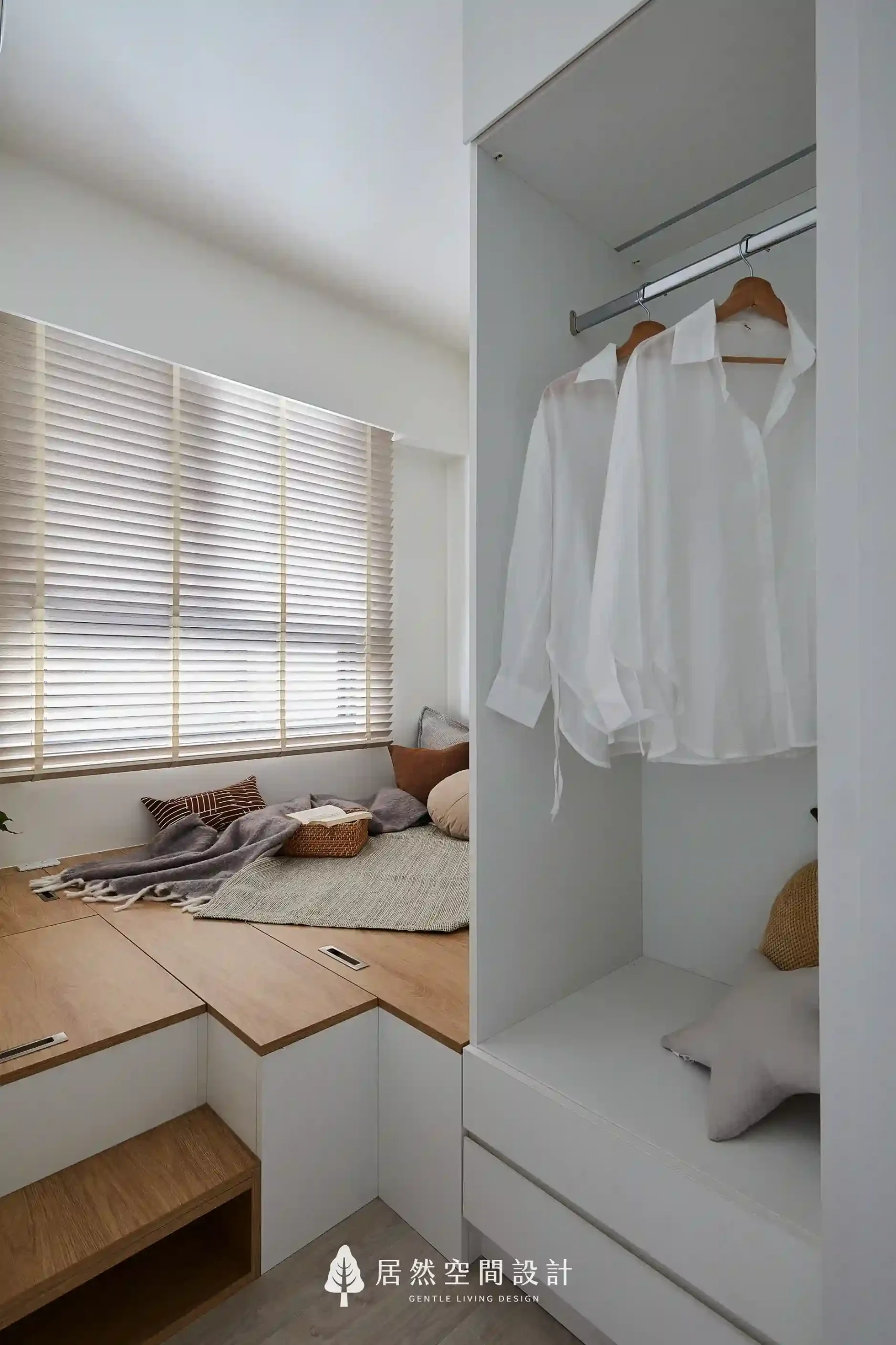 對於家有三寶的屋主來說,許多需求都以孩子為優先考量,足量的收納規劃也是必不可少,玄關處的大型收納櫃不僅可收鞋子、備品、掃地機器人、雙人嬰兒車等物品,中段鏤空的平台搭配茶鏡增加層次感,鑰匙、口罩、零錢等都能出門隨手立即取用,收納櫃還配有間接光源,鏤空處擺放的紀念品及親子照片,在燈光與活潑飾板的裝飾下,讓原本裝潢前單調且有突兀樑的牆面,搖身一變成為家中實用且氛圍感滿滿的特色風景。